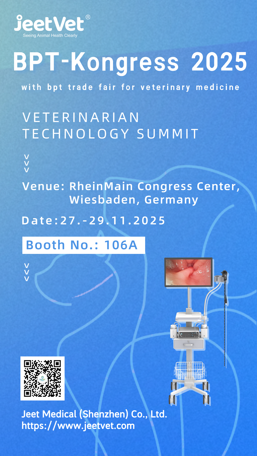 We sincerely invite you to bpt Kongress 2025 from Nov. 27th to 29th, at RheinMain Congress Center, Wiesbaden, Germany, Visit Jeet Medical at booth 106A to discover our latest comprehensive solutions for veterinary endoscopy. We look forward to meeting you and exploring potential business opportunities together.